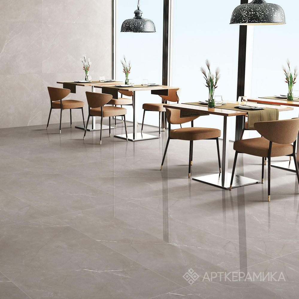Выпускается два формата – 60×60 и 60×120 см. Толщина у квадратных плиток – 8.3 мм, а поверхность может быть как матовой, так и полированной. Прямоугольные отличаются толщиной в 9.5 мм, и только полированным покрытием. Чтобы сохранить естественность натурального материала, плитки выпускаются с несколькими вариантами рисунка – «лицами». У квадратных – двенадцать лиц, у прямоугольных – шесть. Для уменьшения ширины межплиточного шва, края керамогранита обязательно реттифицируются, то есть обрезаются в размер. Изделия Vitrum Grigio отличаются повышенной прочностью, влагостойкостью, легко чистятся, основное их предназначение – напольная укладка, но они также подходят и для облицовки стен, в том числе фасадных.