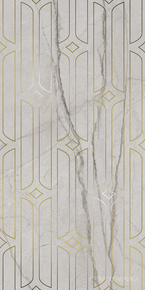 Декор Ифран серый светлый глянцевый обрезной 1195x600x9