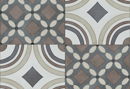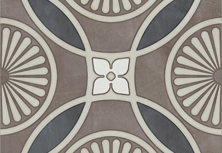 Геометрический. Может быть как простым, состоящим из точек, линий и фигур (например, коллекция Помпеи от Керамин с черно-белыми ромбами), и сложным, когда разнородные элементы пересекаются и группируются, образуя рисунок (керамическая плитка Мальта этого же бренда с рисунком из орнаментированных полуокружностей).