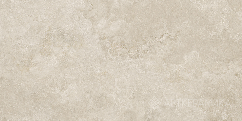 Кремово‐бежевый оттенок с мягкой текстурой травертина придает интерьеру естественную элегантность и спокойствие. Дизайн коллекции включает два базовых рисунка — «Cloud» и «Line», что создает эффект натурального камня без визуальных повторов.