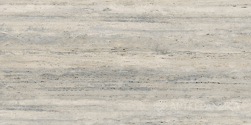 Серебристо-серый оттенок с текстурой травертина создает стильный, современный образ. Матовая поверхность подчеркивает фактуру камня, визуально делая покрытие более глубинным и выразительным.