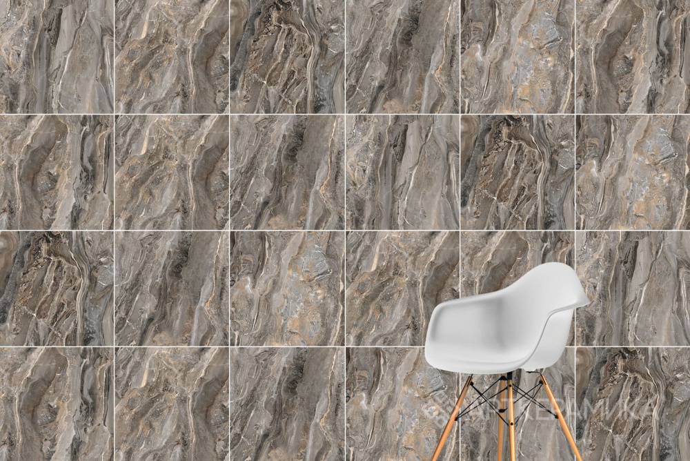 Насыщенный серо-коричневый оттенок «Греж» с натуральным мраморным рисунком создает благородную, классическую атмосферу в интерьере. Структурированная поверхность с легким блеском подчеркивает природную эстетику камня, сохраняя насыщенность и выразительность цвета. Высокая прочность керамогранита делает его надежной отделкой для долговечного покрытия.