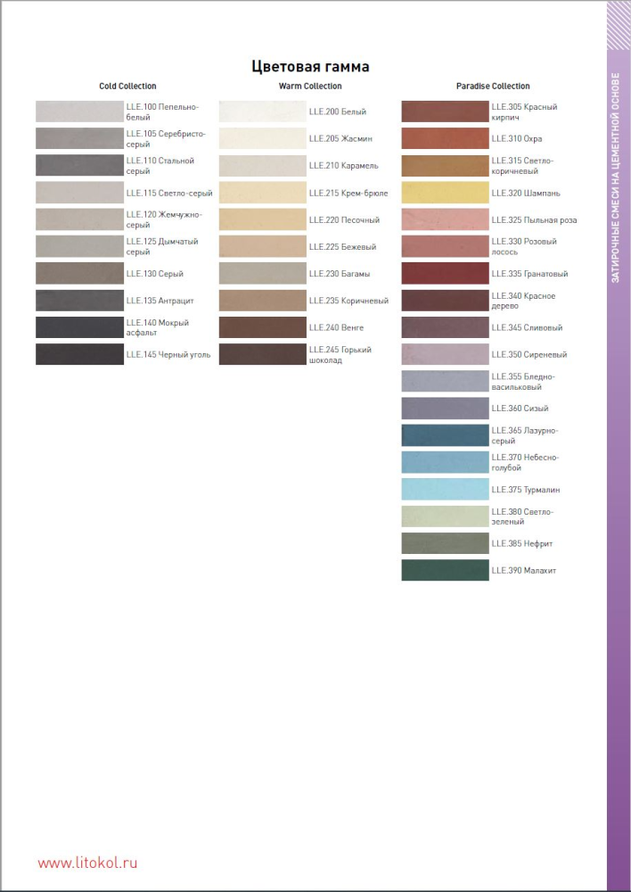 Продукт универсален в применении и подходит для жилых, общественных и промышленных помещений, включая ванные, кухни, бассейны, террасы и балконы. Он эффективен на деформирующихся основаниях, таких как гипсокартон, гипсоволокнистые листы и стекломагнезитовые панели, а также на цементных стяжках с водяным или электрическим подогревом. Расширенная цветовая гамма, представленная в коллекциях WARM, COLD и PARADISE, позволяет подобрать оттенок под любой интерьер, создавая как сдержанные, так и яркие акцентные решения.